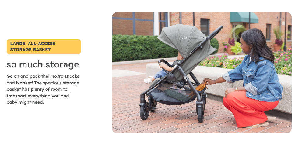 large, all-access storage basket holds all of baby's essentials right within reach